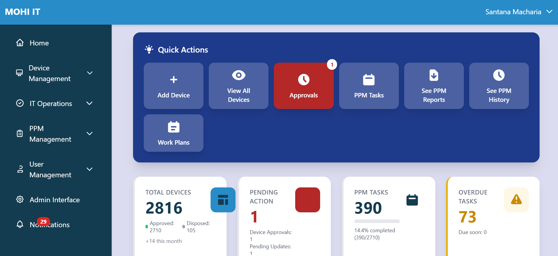 An inventory management system to track assets